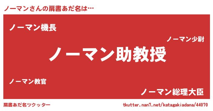 | 男性向けラノベタイトル風あだ名 | 『ノーゲーム・ノーノーマン』 |