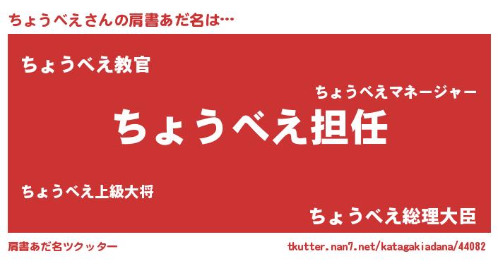 | 男性向けラノベタイトル風あだ名 | 『ちょうべえという概念が存在しない退屈な世界 』 |