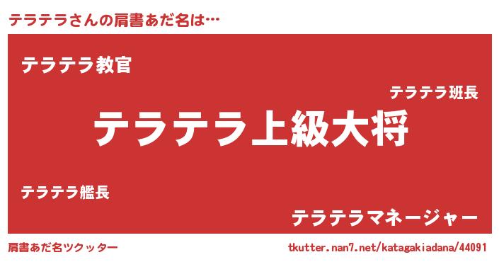| ヒーロー風カッコイイあだ名 | 『仮面テラダー』『魔戒騎士テラ』 |