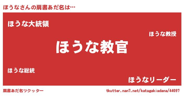 | 男性向けラノベタイトル風あだ名 | 『魔弾の王とほうな』 |
