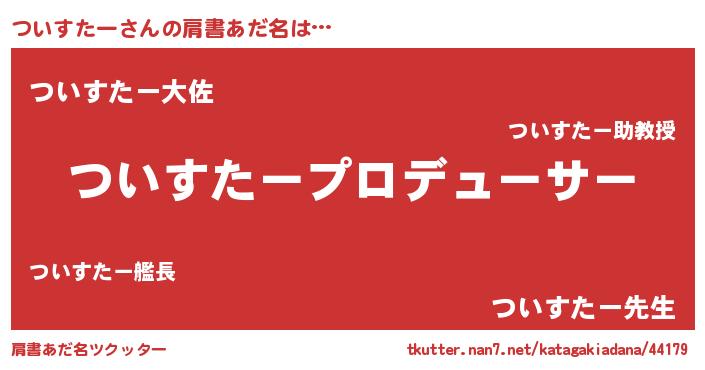| 男性向けラノベタイトル風あだ名 | 『ついすたーに滅ぼされるだけの簡単なお仕事です』 |