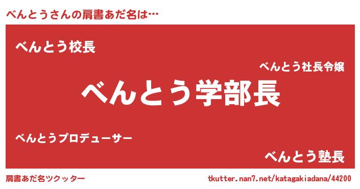 | ヘコむあだ名 | 『べんとう(遠い目)』『べんっ子』 |