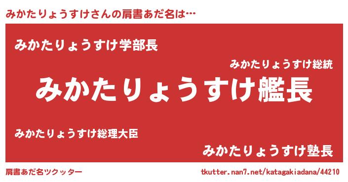 | 女子向けラノベタイトル風あだ名 | 『シンデレラみかたりょうすけ家の靴箱館』 |