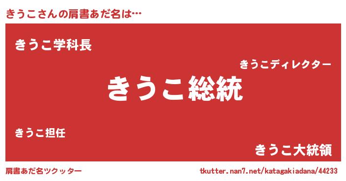 | ヒーロー風カッコイイあだ名 | 『超時空戦士キウコ』『天空の使者きうこ』 |