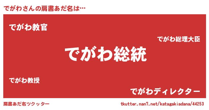 | 男性向けラノベタイトル風あだ名 | 『Re:でがわから始める異世界生活』 |