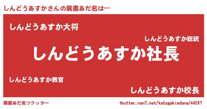 | ヘコむあだ名 | 『しんにー』『しんどうあすか(遠い目)』 |