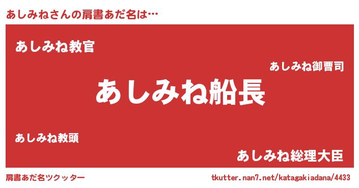 | 意味不明あだ名 | 『住所不定無職あしみね(6歳)』 |