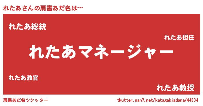 | 男性向けラノベタイトル風あだ名 | 『れたあに滅ぼされるだけの簡単なお仕事です』 |