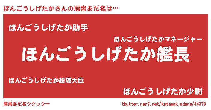 | 欧米人風あだ名 | 『ほんごうしげたか・ステッグマイヤー』 |