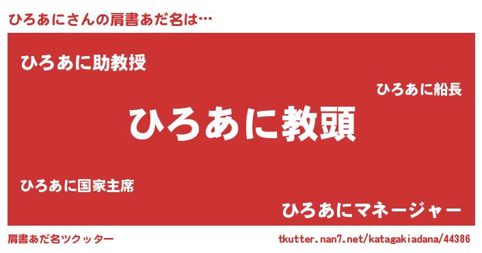 | ヘコむあだ名 | 『ひろあに(笑)』『酢こんぶ』 |