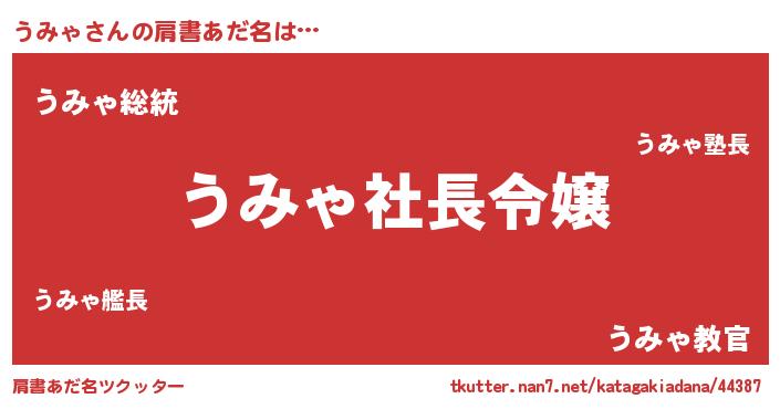 | 男性向けラノベタイトル風あだ名 | 『うみゃの憂鬱』『魔法科高校のうみゃ』 |