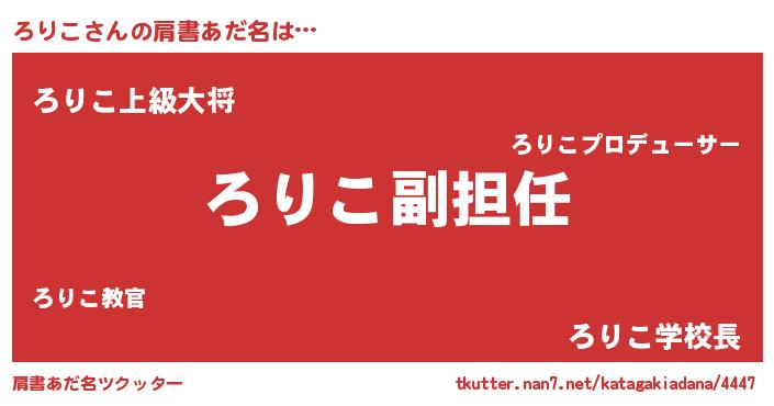 | ヘコむあだ名 | 『ろりこ(遠い目)』『レバニラ』 |