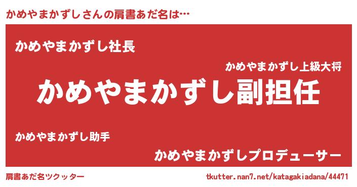 | ヘコむあだ名 | 『かめやまかずし(震え声)』『かめにー』 |