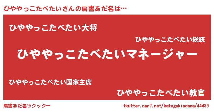 | 欧米人風あだ名 | 『アンジェラ・ひややっこたべたい』 |