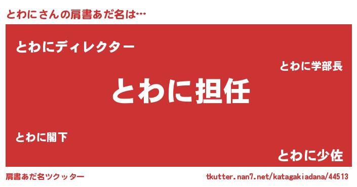 | ヘコむあだ名 | 『とわに(苦笑)』『つくし』 |