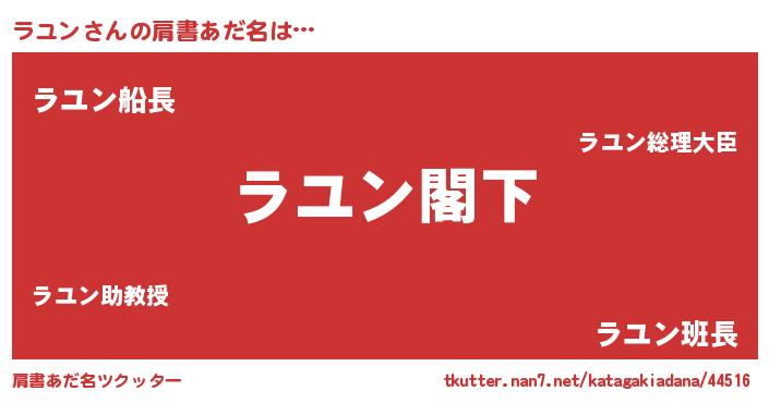| ピコ太郎風あだ名 | 『ラユ史郎』『ピラ一郎』『ララ太郎』 |