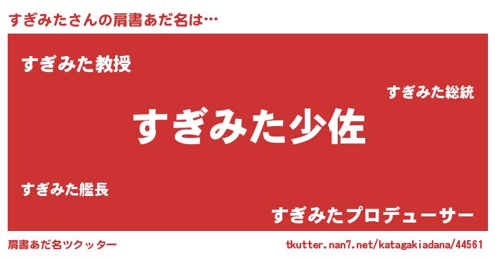 | 男性向けラノベタイトル風あだ名 | 『すぎみた~年齢イコール彼女いない歴の魔法使い~』 |