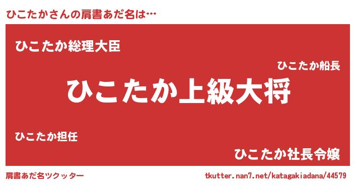 | 男性向けラノベタイトル風あだ名 | 『ヒコタカスレイヤー』 |