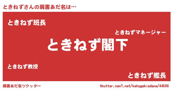 | 男性向けラノベタイトル風あだ名 | 『Re:ときねずから始める異世界生活』 |