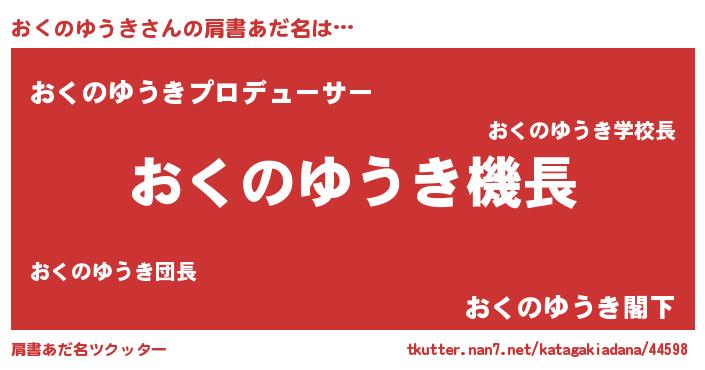 | 意味不明あだ名 | 『自称おくのゆうき』 |