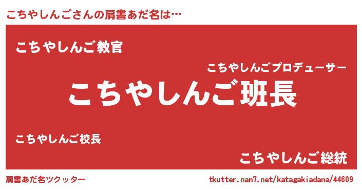 | 意味不明あだ名 | 『とにかく怪しいこちやしんご』 |