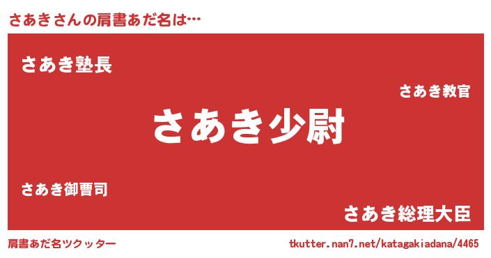 | ヒーロー風カッコイイあだ名 | 『暗黒騎士サア』『ウルトラさあきマン』 |