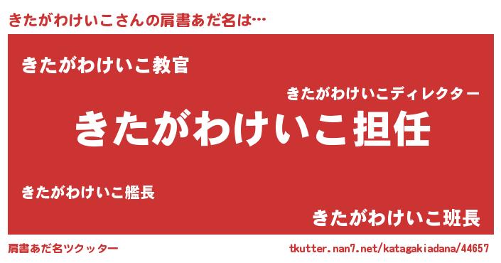 | 胡散臭い通販商品みたいなあだ名 | 『絶対に幸福をもたらす水素水…その名も「きたがわけいこ」』 |