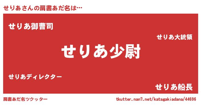 | ヒーロー風カッコイイあだ名 | 『スーパーセリア』『ウルトラせりあマン』 |