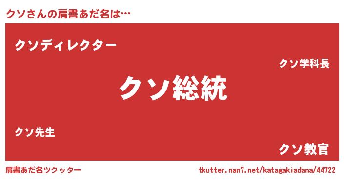 | 男性向けラノベタイトル風あだ名 | 『魔法科高校のクソ』『魔弾の王とクソ』 |