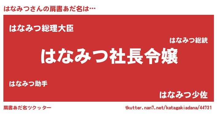 | 胡散臭い通販商品みたいなあだ名 | 『必ず成功する霊験あらたかなお札…その名も「はなみつ」』 |