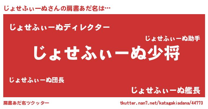 | ヘコむあだ名 | 『じょっぺ』『じょせふぃーぬ(爆)』 |