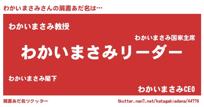 | 男性向けラノベタイトル風あだ名 | 『わかいまさみの嫁は女の子じゃないと思った?』 |