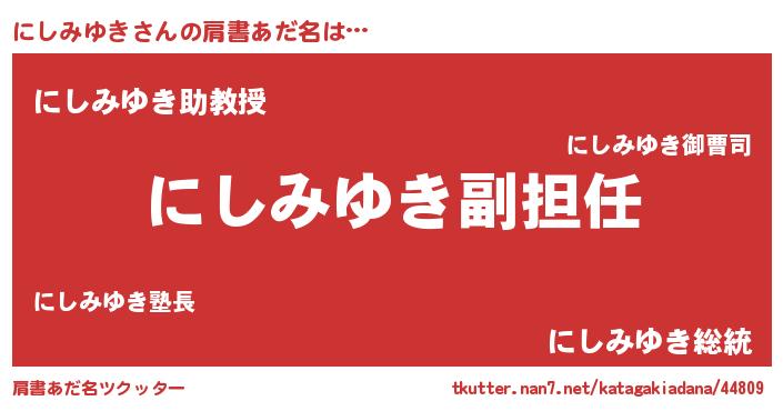 | 男性向けラノベタイトル風あだ名 | 『にしみゆきという概念が存在しない退屈な世界 』 |