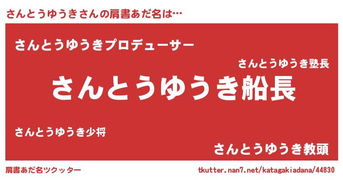 | ヘコむあだ名 | 『さんとうゆうき(笑)』『さんぷりん』 |