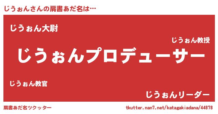 | 男性向けラノベタイトル風あだ名 | 『じうぉんに滅ぼされるだけの簡単なお仕事です』 |