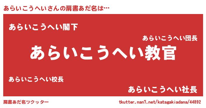| 意味不明あだ名 | 『住所不定無職あらいこうへい(81歳)』 |
