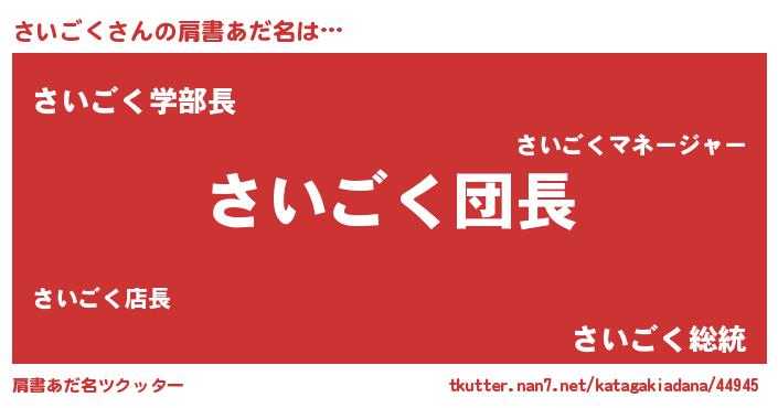 | 意味不明あだ名 | 『とにかく怪しいさいごく』 |