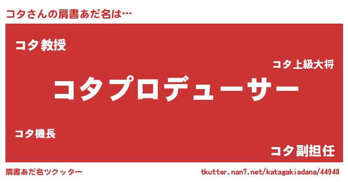 | 男性向けラノベタイトル風あだ名 | 『はたらくコタさま!』『緋弾のコタ』 |