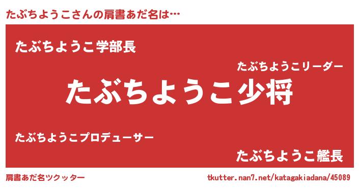 | 男性向けラノベタイトル風あだ名 | 『たぶちようこ~年齢イコール彼女いない歴の魔法使い~』 |