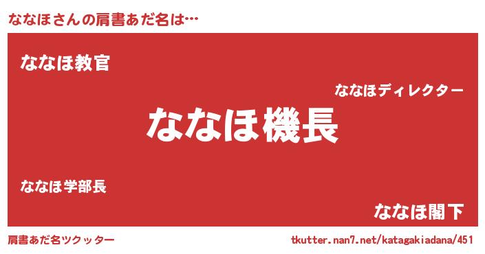 | 男性向けラノベタイトル風あだ名 | 『緋弾のナナホ』『はたらくななほさま!』 |