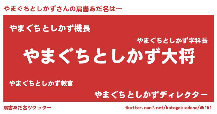 | 男性向けラノベタイトル風あだ名 | 『ヤマグチトシカズスレイヤー』 |
