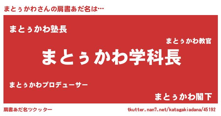 | ヘコむあだ名 | 『まとっぺ』『まとぅかわ(苦笑)』 |