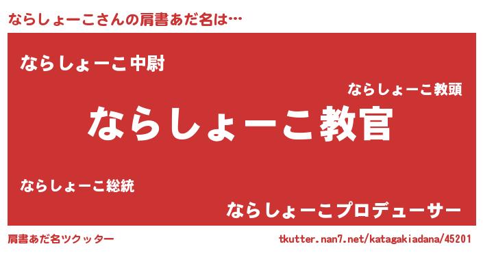 | ヒーロー風カッコイイあだ名 | 『仮面ナラダー』『ネオナラショーコ』 |