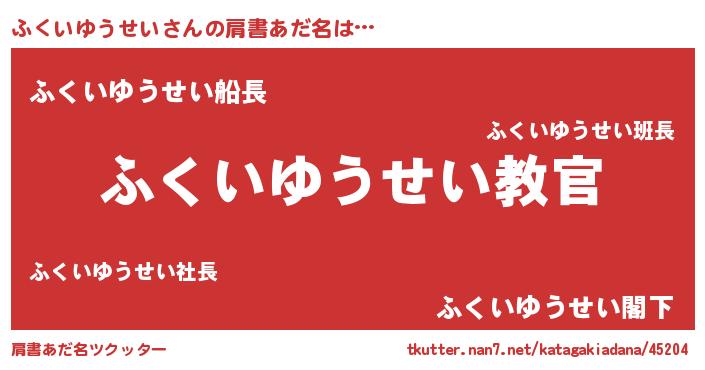 | 意味不明あだ名 | 『住所不定無職ふくいゆうせい(6歳)』 |