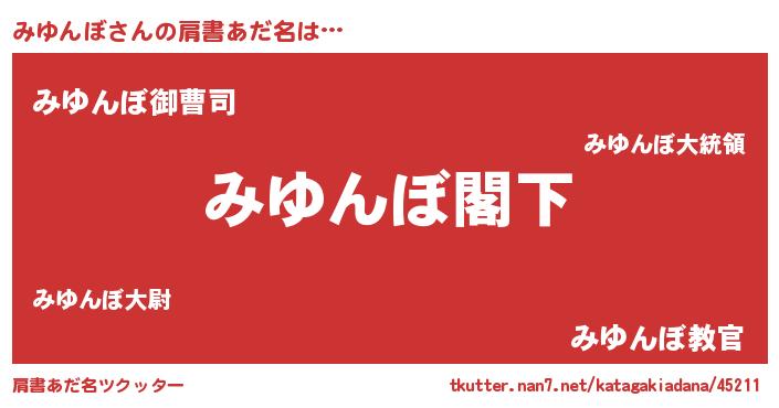 | 男性向けラノベタイトル風あだ名 | 『Re:みゆんぼから始める異世界生活』 |