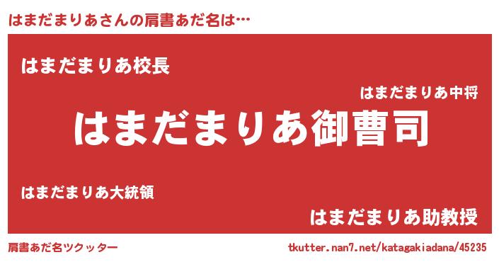 | 男性向けラノベタイトル風あだ名 | 『ハマダマリアアートオンライン』 |