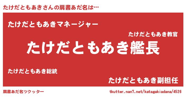 | ヘコむあだ名 | 『たけだともあき(爆)』『なまこ酢』 |