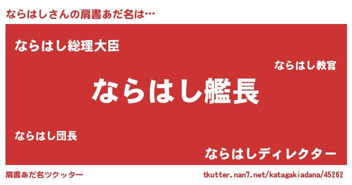 | 意味不明あだ名 | 『ならはしフォーエバー』『自称ならはし』 |