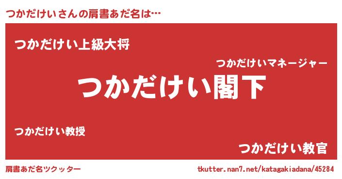 | 意味不明あだ名 | 『自称つかだけい』『ニラ科つかだけい属』 |