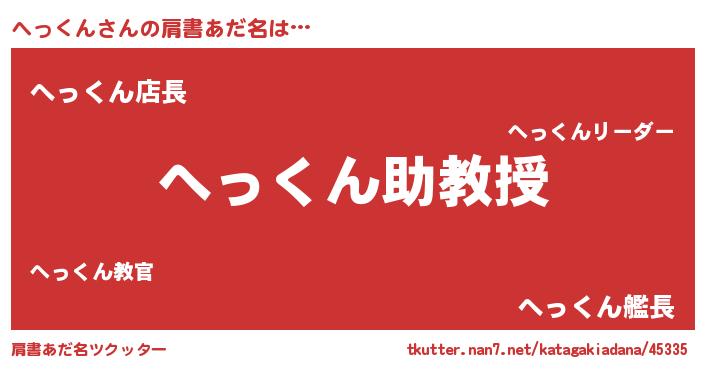 | ヒーロー風カッコイイあだ名 | 『正義の使者へっくん』『暗黒騎士ヘッ』 |